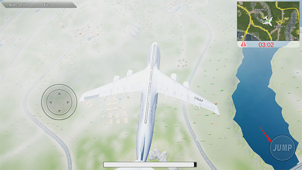 4、我们先乘坐飞机,找到想去的地点,点击右下角跳伞